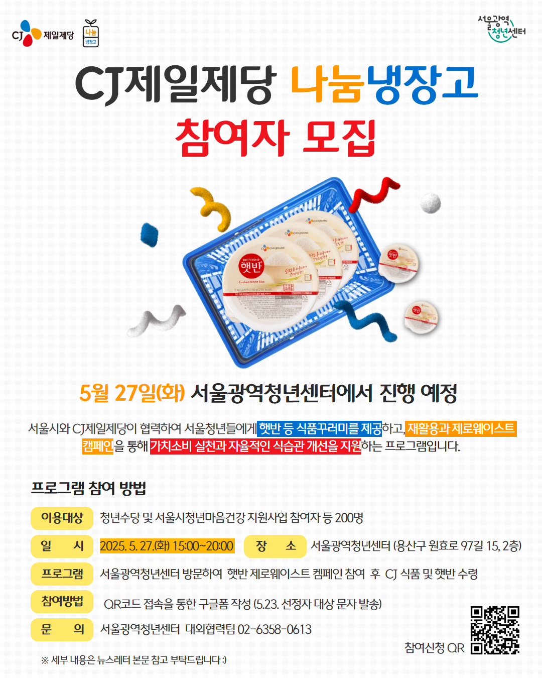 청년정책 연계 프로그램에 참여한 청년이라면 햇반 용기 반납 없이도