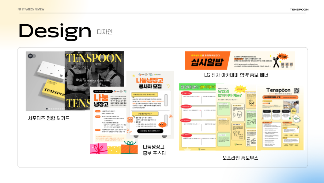 식품사업팀은 그동안의 대학별 사업의 성과와 효율적인 봉사자 관리 시스템을, 경영지원팀은 내부 운영 개선과 사업 지원을, 홍보전략팀은 대외 홍보 캠페인과 콘텐츠 전략을 중심으로 발표했습니다.