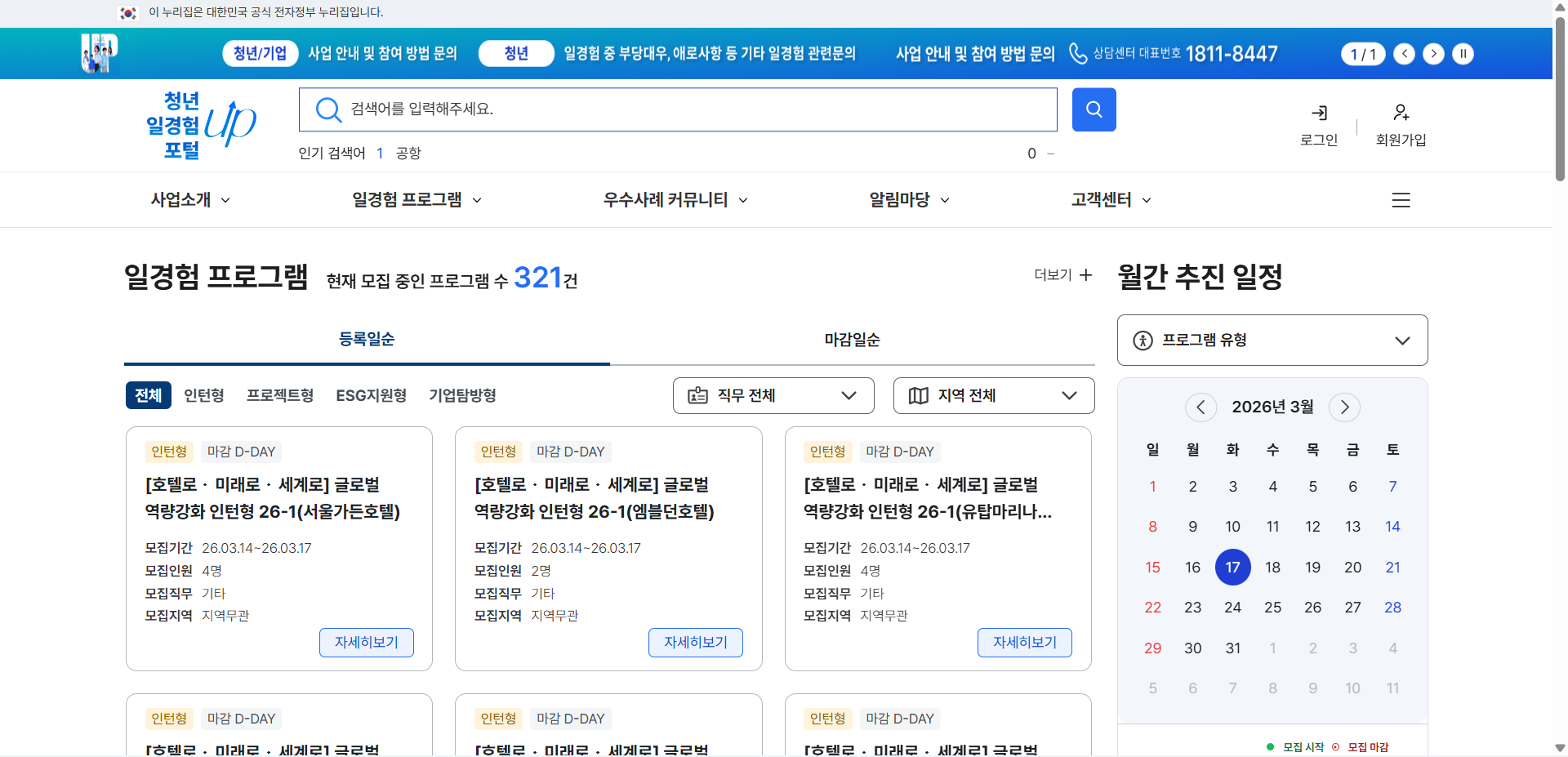 검사 후에는 바로 포털에서 자신에게 적합한 일경험을 찾고 지원해볼 수 있어요.