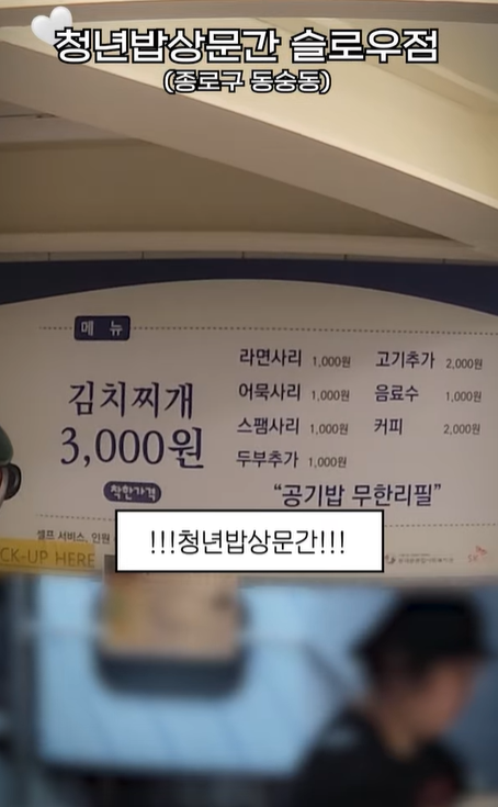 마지막으로 소개해 드릴 곳은 이제 청년들 사이에서는 모르는 사람이 없을 정도로 유명해진 ‘청년밥상문간 슬로우점’입니다! 대학로 인근 동숭길 지하에 자리 잡은 이곳에 들어서면 가장 먼저 "이게 정말 3,000원인가요?"라는 질문이 절로 나옵니다. 요즘 웬만한 카페의 아메리카노 한 잔 값보다 저렴한 가격에 제대로 된 김치찌개를 맛볼 수 있기 때문입니다.